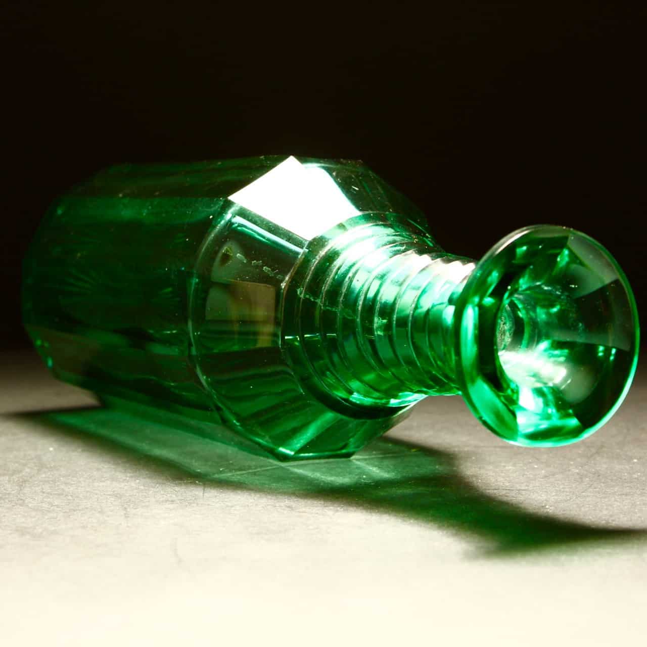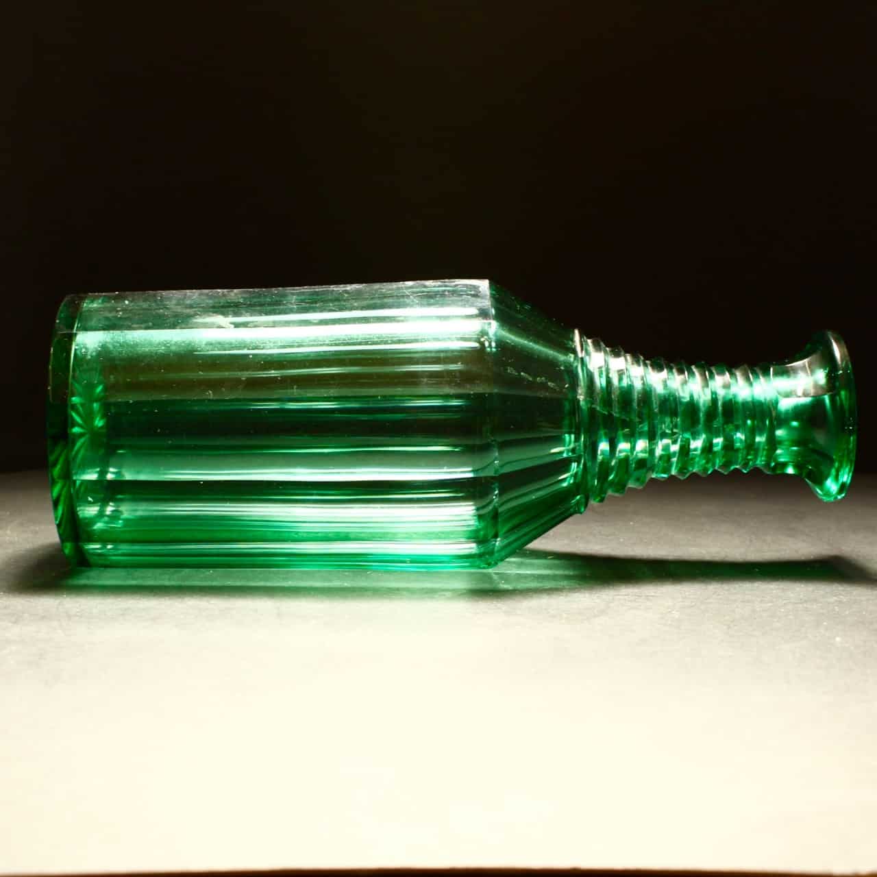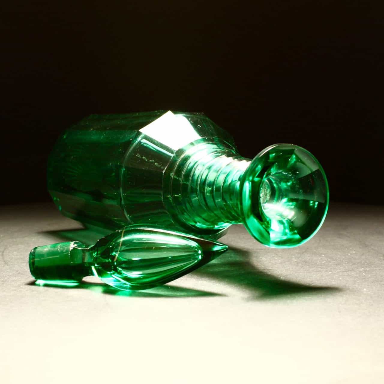 The Richardson glass decanter has the most fabulous cut body with a vibrant green colour.