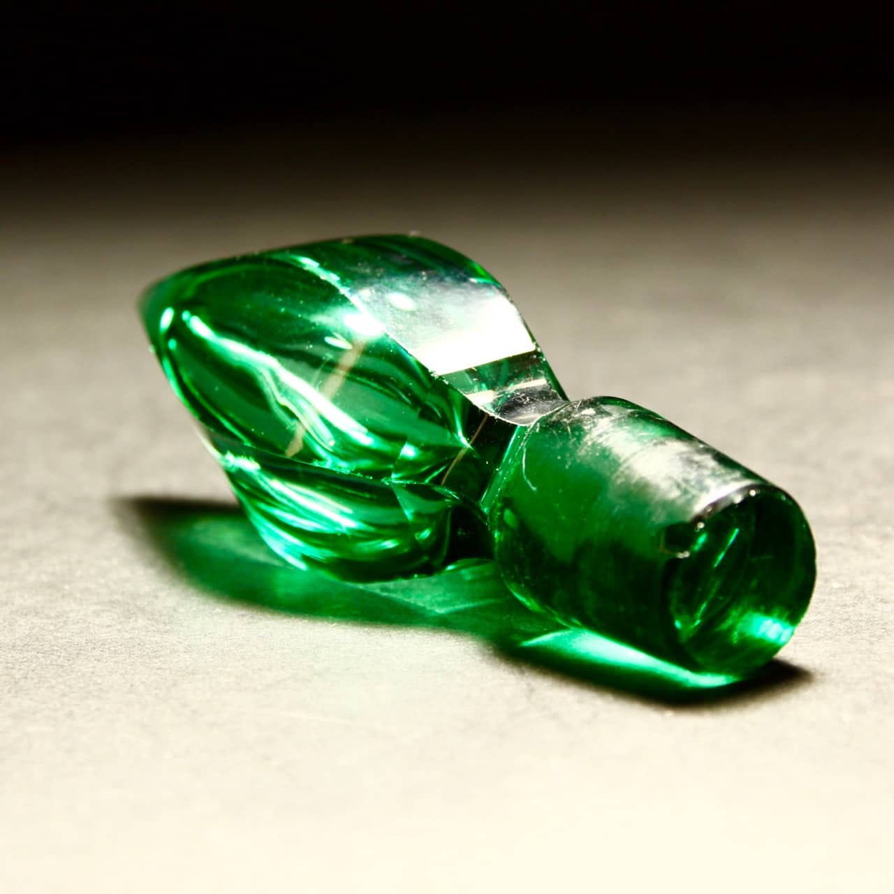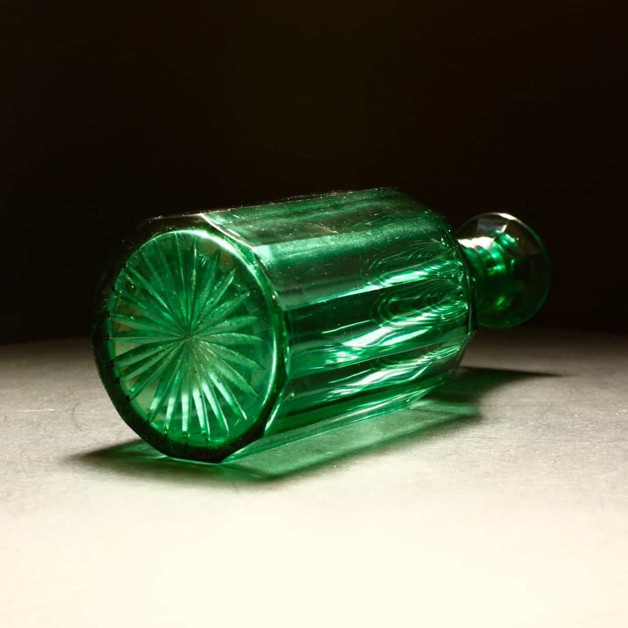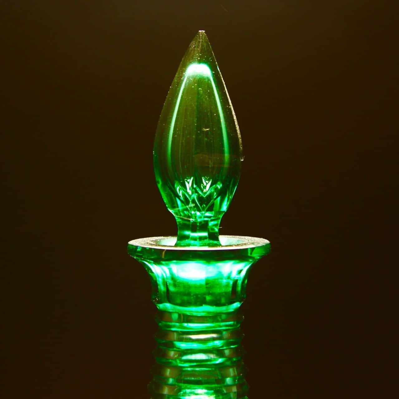 The Richardson glass decanter has the most fabulous cut body with a vibrant green colour.
