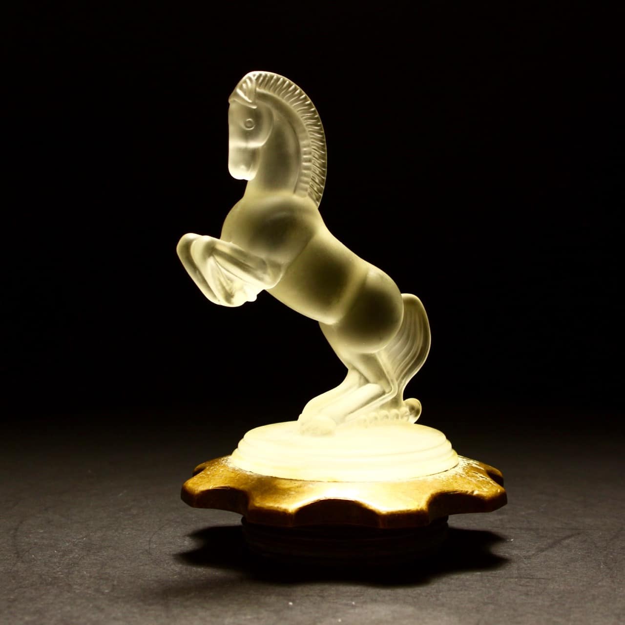 20th Century Frosted Ferrari Horse Glass Car Mascot C1950s