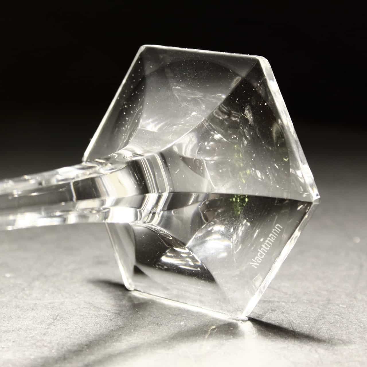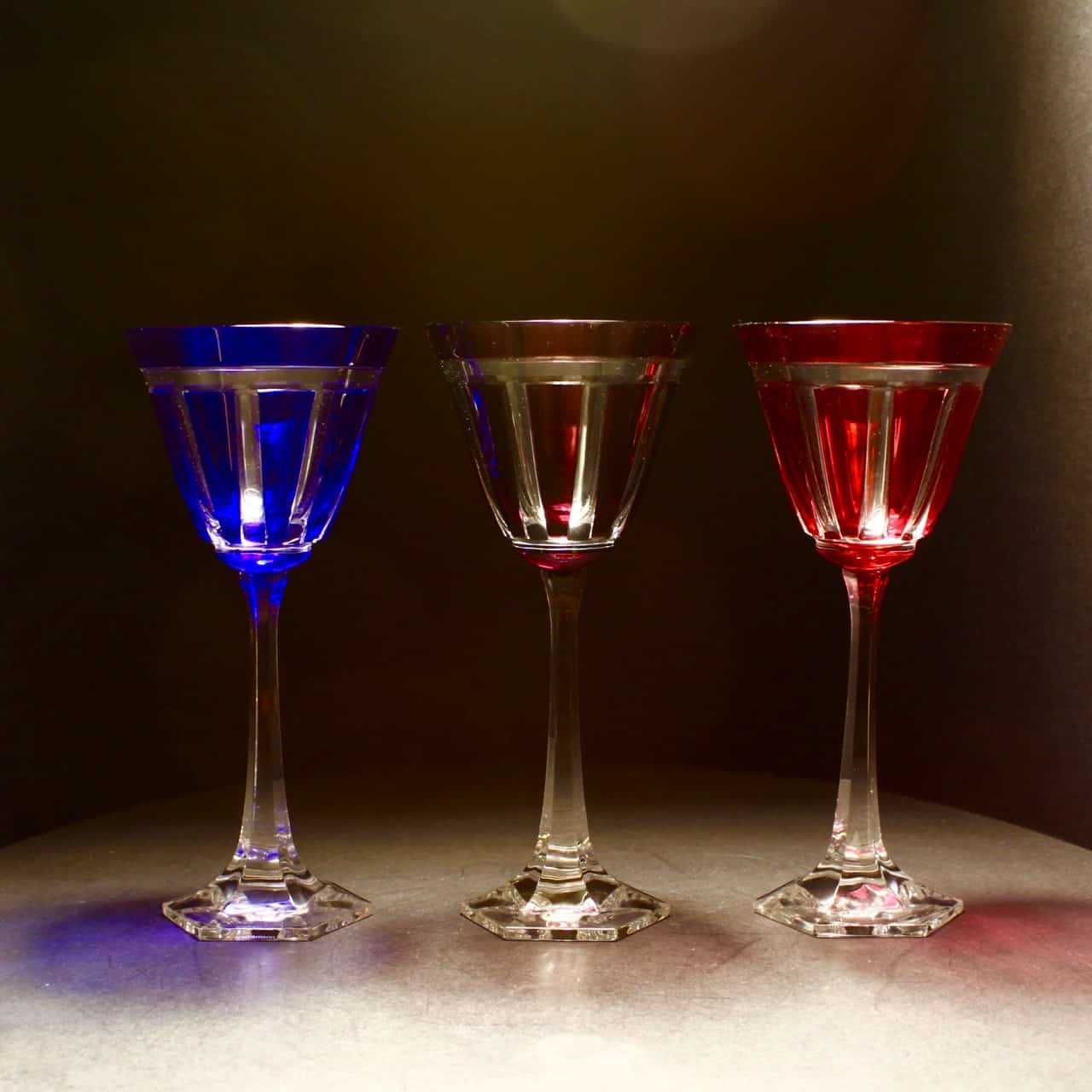 The wine glasses are fabulous quality with cased bowls where a layer of glass has been applied to the clear glass and then cut away to give an attractive design. The company Nachtmann was established in 1834 in Bavaria Germany and was then taken over by the Austrian glassworks Riedel in 2004. The wine glasses have a super heavy feel to them.