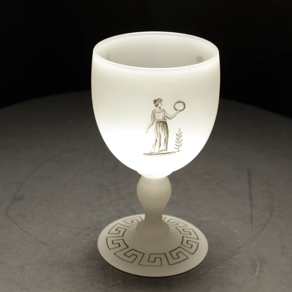 The Richardson wine glass is the most fabulous example of a large wine glass with classical scenes spanning the bowl of the glass with the added desirability of having the vitrified enamel color mark.